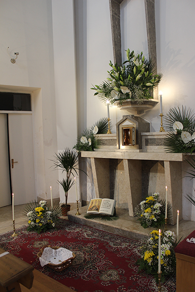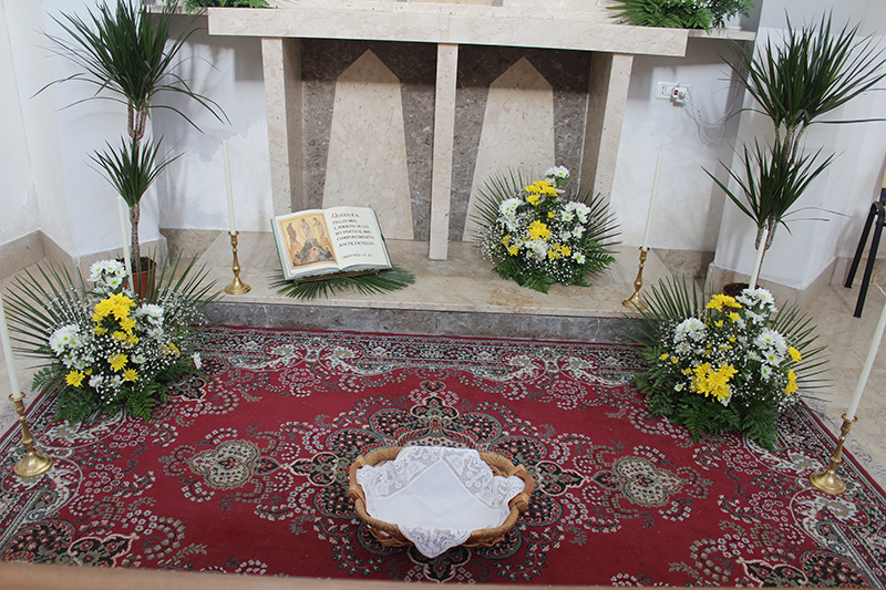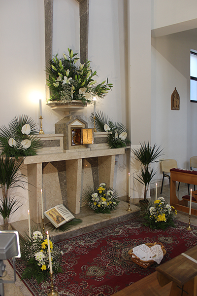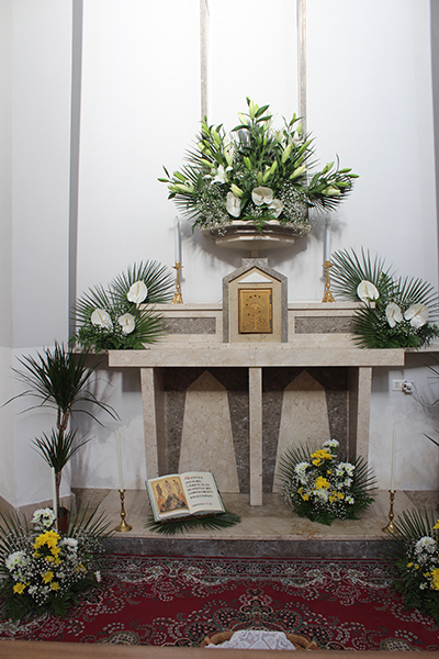 La Trasfigurazione è qui raffigurata con i fiori. Una composizione al centro in alto è Gesù, i gigli e gli anturium bianchi, vogliono rappresentare il candore delle vesti e lo sfavillare del suo volto, ai lati due composizioni con anturium bianchi sono i profeti Mosè e Elia, in basso tre composizioni con margherite bianche e gialle sono Pietro, Giacomo e Giovanni.